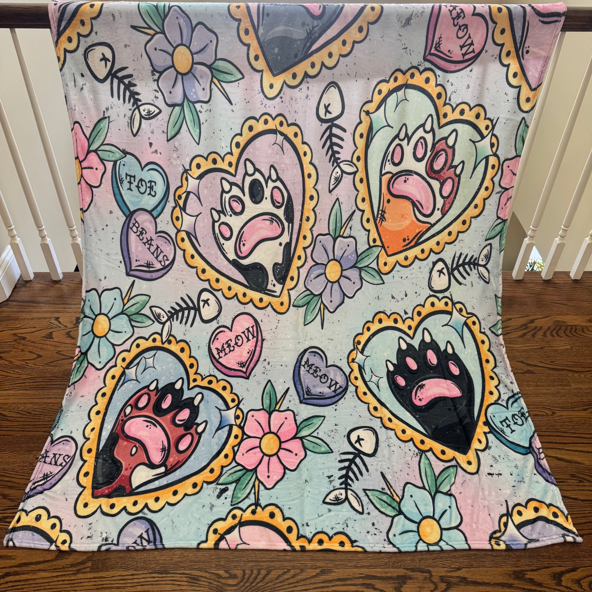 Blanket - Cat Heart Tattoo Meow on Pastel